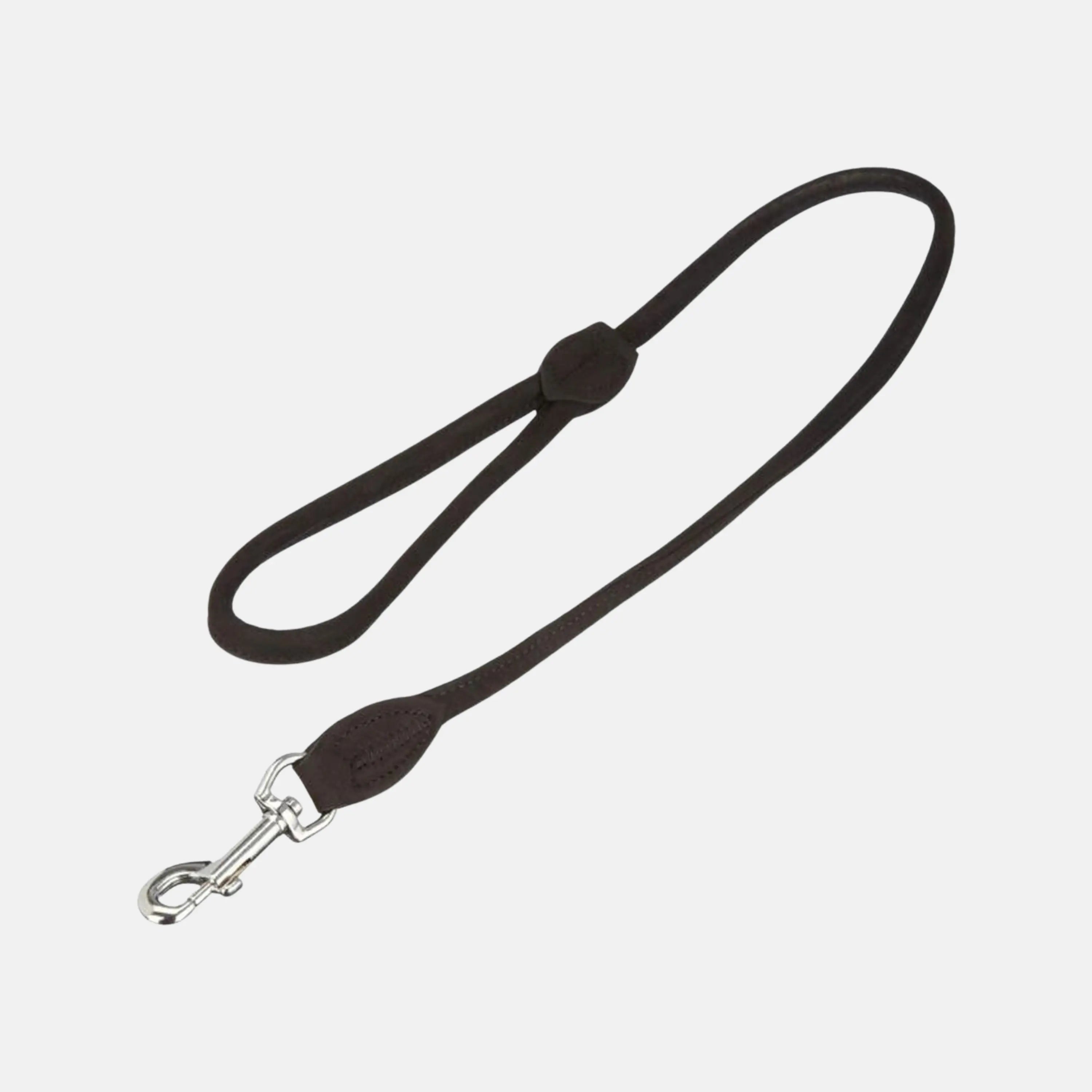 Das Bild zeigt die Karlie Buffalo Rund Leine in der Farbe Schwarz. Hergestellt ist die Leine aus wasserabweisenden und imprägnierten Kalbsleder.
