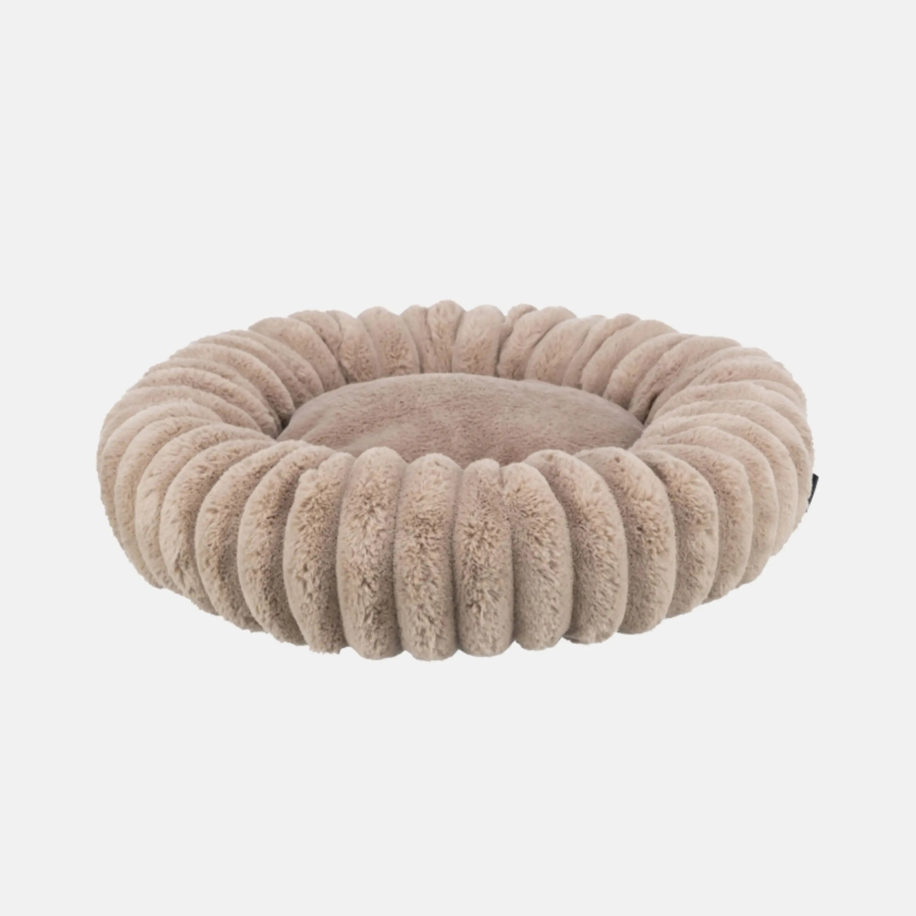 Das Bild zeigt das Trixie Bett Lonnic in der Farbe hellbraun aus der Frontansicht. Es eignet sich für Katzen und Hunde.
